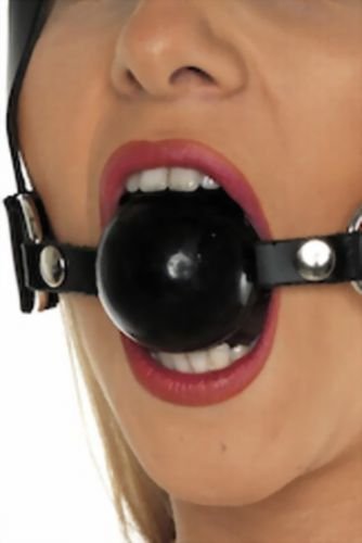 Leder Knebelgeschirr mit Silikonball. Der geschmacksneutrale Ball ist an einem soliden Lederriemen angebracht. Der Riemen kann individuell eingestellt werden.
