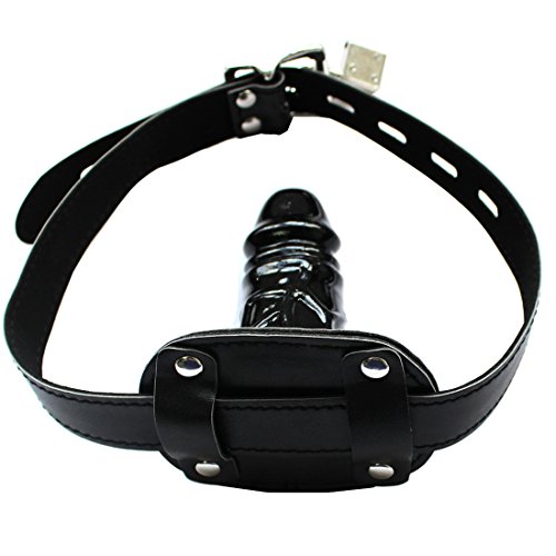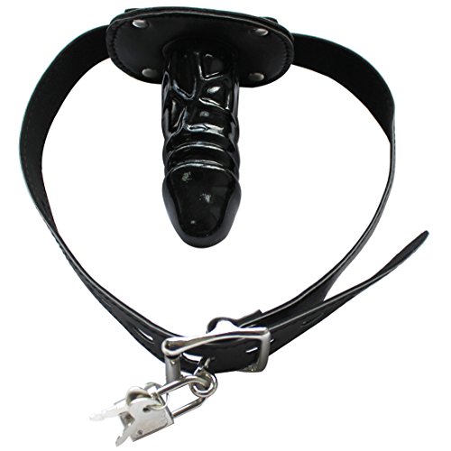 Features: This mouth restraint has belt buckle fastening, with a lock. Features a silicone rubber dildo, about 10cm in length, 3.5cm in diameter (max).