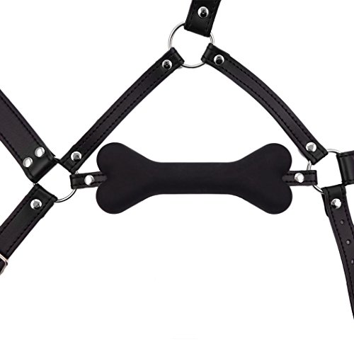 Beissknebel #7138 Mundknebel Knochen mit Leder-Kopfharness, schwarz