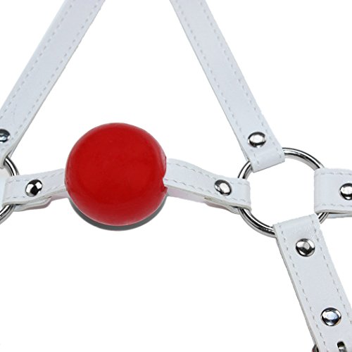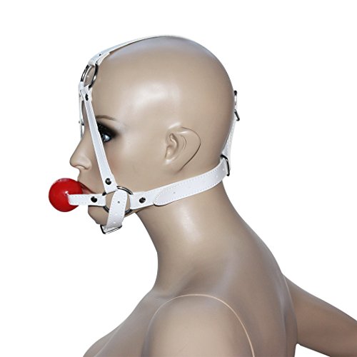 SEE-X® Kopfharness mit Knebel, Lederharness weiß, Mundknebel rot, Ballknebel Ø 4,00cm #7112